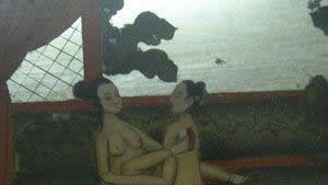 春宫图中将男女性爱生活赤裸裸地描绘出来的,称为"明春宫";描绘男女穿着衣服,行为亲昵的,称为"暗春宫"。"暗春宫"比较含蓄,着重于男女性心理的刻画,往往更有意境。 由于年代久远,汉、唐的春宫画已不存,宋代《春宵秘戏图》、元代画家赵子昂画的三十六幅、十二幅春宫画也不存世。现存世的大多为明、清时的作品。现存世的最早的箧底画是日本平安朝时代日本画家住吉庆恩描临自9世纪的作品。下面一起来看看来自广州第四届性文化节上性文物展览中的春宫图拓片。
